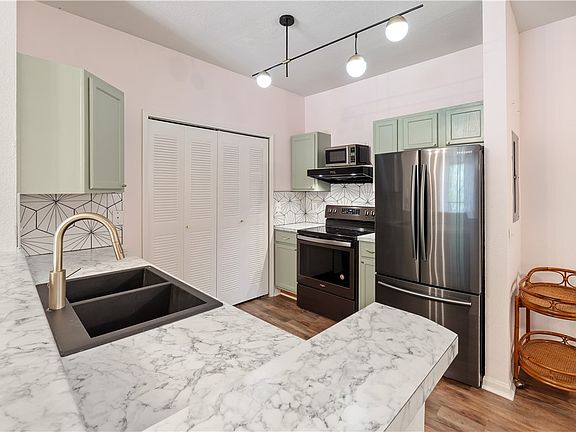 This unit definitely has a designer touch. Lots of updates. Let's name a few! New lighting, giving off a modern vibe. Kitchen cabinets have been updated with a beautiful shade of calming green. Back splash is fantastic. Giving it an extra punch of personality. No carpet! Can I get an amen?! All tile in bathrooms have been updated and look fantastic. End unit, tucked away towards the back of the development allowing for traffic and quiet living. Cherry on top is the screened in porch making it perfect to enjoy a little fresh air while drinking your coffee or studying for an exam.