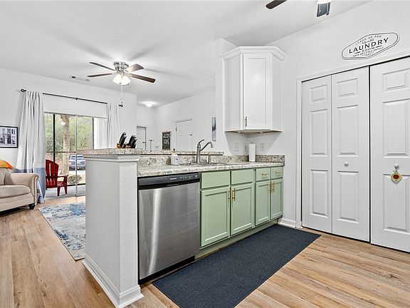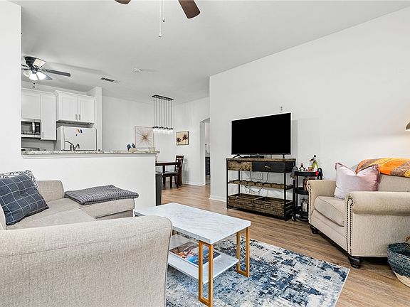 Updated and well-kept bottom floor unit for sale - This 1 Bed 1 Bath with a Single car garage has updated LVP flooring in the living areas! Updated tile and vanity in the bathroom! Freshly painted! Updated kitchen cabinets! A new fixture in the dining area! This unit is turnkey and ready for a new owner! The screened-in porch offers comfort and privacy and is ideal for studying or winding down. This is a gated community with on-site management. The amenities include a community outdoor pool, a clubhouse, a workout room, and even a play area for kids. The HOA covers water, sewage, trash pickup, cable, internet, amenities, landscaping, exterior insurance, and exterior building maintenance.