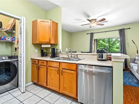 This updated and well-maintained upstairs condo won't last long! It's ready for students, professionals, investors, or game day fans. The condo features an open concept into all rooms. The kitchen is equipped with updated stainless steel appliances. Two spacious bedrooms offer privacy and are separated by the living area. The condo features track lighting and updated ceiling fans throughout. The floors are all LVP with tile in the kitchen and two separate bathrooms. Enjoy the outdoors as you sit on your screened patio and relax while taking in the view of the pool. The property also features two peaceful ponds with fountains and occasional ducks! The HOA for this gated community of Longleaf Villas includes cable/internet, water, grounds maintenance, clubhouse and an in-ground pool. Come live the good life!