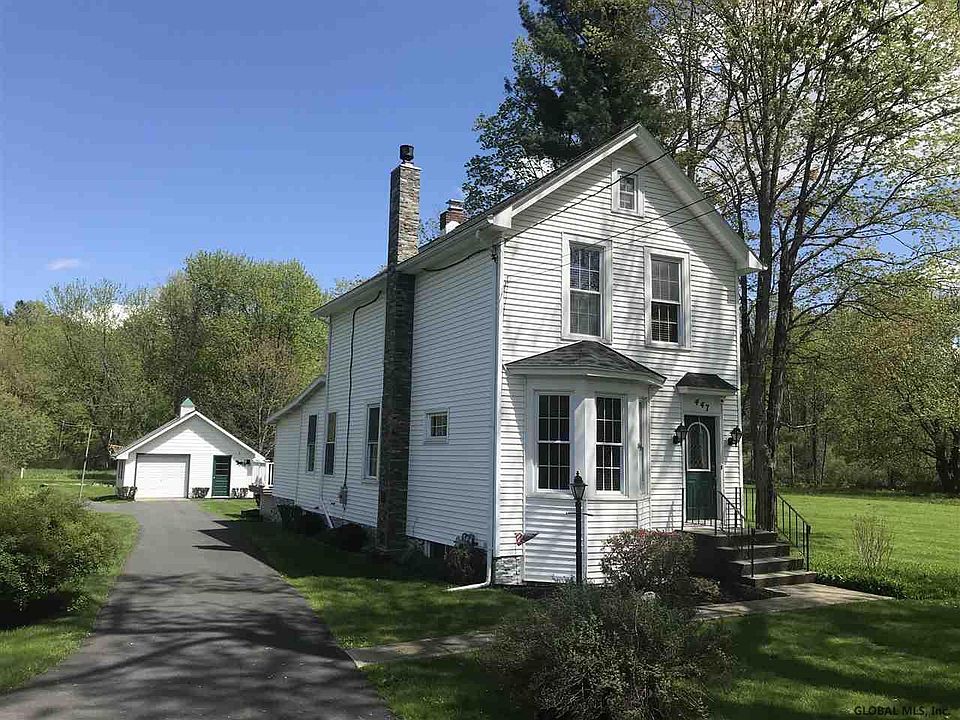 Meticulously cared for and impeccably maintained farmhouse conveniently in West Sand Lake. Situated on over 5 acres of land and bordering a creek to the rear, The exterior of the home features vinyl siding and stone accents. In addition to a detached garage is a large pole barn and shed, along with an expansive, maintenance free deck, recently paved driveway and above ground pool for hot summer days. The first floor boasts a completely custom kitchen featuring granite countertops, hickory cabinetry and stainless appliances, large dining and living rooms, a 1/2 bath, a great mudroom and laundry room, and a recently updated septic system! Upstairs are 4 bedrooms and full bath. Also included is an automatic natural gas Generac. A must see type of home!