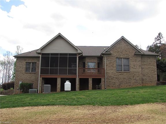 Executive brick ranch in Wallburg on 5 acres of land! Featuring split floor plan, Jack and Jill bath and a full finished basement with separate entrance. Main level offers nine foot ceilings, Trey ceiling in master and dining room, living room has cathedral ceiling & stone fireplace with gas logs, screened porch.