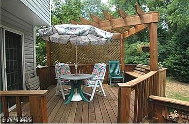 Brick Front End Of Group Garage Townhome!!Lge Bonus parking area..Huge 2 Tier deck with built in pergola,built to hold hot tub!Backs to Woods.Vaulted ceilings in master,great family room w/ fireplace.New carpet and fresh paint.Large lot nicely landscaped,garage with built in storage shelves,large eat in kitchen w/ additional dining rm area and wood floors