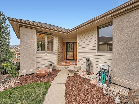Welcome home to your own custom-built, executive ranch with a finished basement and stunning views of the surrounding foothills! The good-sized walk-out basement lot is nestled on the western slope of North Table Mountain on a quiet cul-de-sac in upscale Mesa Meadows in Golden’s desirable north end! The home is move-right-in ready with a tasteful, neutral palette and timeless yet luxurious finishes! OR relish in the home’s prime location and plan your creative revisions while you take-in the views with privacy on your elevated rear deck! The open concept main floor possesses vaulted ceilings and tons of recessed-lights. Just off of the entry, the flex-spaced study or second main level bedroom provides an additional private space. The updated open kitchen has beautiful granite counters and tons of cabinets. A large granite island includes the Kitchen-Aid cooktop. There is also a built-in butler area near the walk-in pantry. The full suite of stainless steel appliances are included. The kitchen overlooks the main floor living room that comes with a gas FP hugged by built-in bookcases. Sizable main floor laundry area has a wash sink plus a three-quarter bath. The clothes washer and dryer are included. The spacious primary bedroom with a private balcony is bathed in stunning Colorado sunsets and includes a large walk-in closet and a five-piece bath with a jetted tub and oversized shower. On the lower level, two additional spacious secondary bedrooms share a full hall bathroom. The huge rear deck is perfect for relaxation, privacy and entertaining while overlooking the valley of north Golden and the nearby foothills. Supersized 3-car attached garage, too! Solar panels installed in 2010 which are owned, paid for and functioning.
