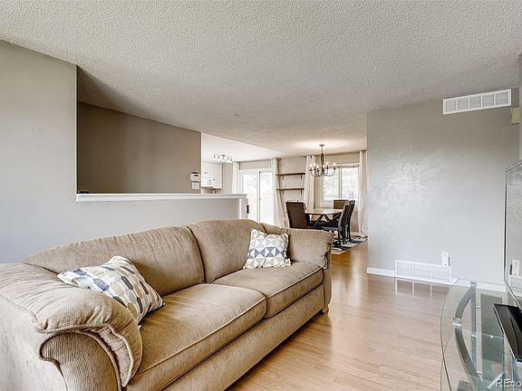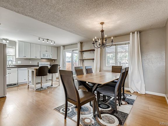 This charming 4 bed, 2 bath ranch is situated in the Northhaven neighborhood in Thornton. Enjoy the beautiful view from your cozy front yard patio that sits directly across the street from Northhaven Park and Greenbelt. As you move from the front yard into the house, you are greeted with an open floor plan with durable vinyl wood plank flooring that moves from the welcoming living room, into the sizable dining room and kitchen. The updated kitchen has lots of cabinet and counter space that includes a new electric range stove and microwave. Off the kitchen there is a large outdoor deck that sits in a spacious backyard with mature trees, a separate dog run/garden space and is completely fenced in with brand new fencing along the south end of the yard. Additional main-floor features include a large owner's suite with a walk-in closet with ample storage, two additional bedrooms and a bathroom with a tiled tub/shower combo and gorgeous vanity. The large finished basement includes a generous conforming bedroom, a full bathroom and a big laundry/storage room. The basement living room has a large corner builtin and hosts additional flex space for a home office, play space or home gym. Additional features include an attached two car garage as well as newer windows, vinyl siding, roof, hot water heater, washer and dryer. Located near numerous shops and restaurants and just a few miles from I-25, you cannot go wrong with this one! Welcome home to East 123rd Avenue! A must see...WELCOME HOME!!!
