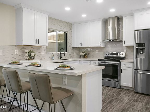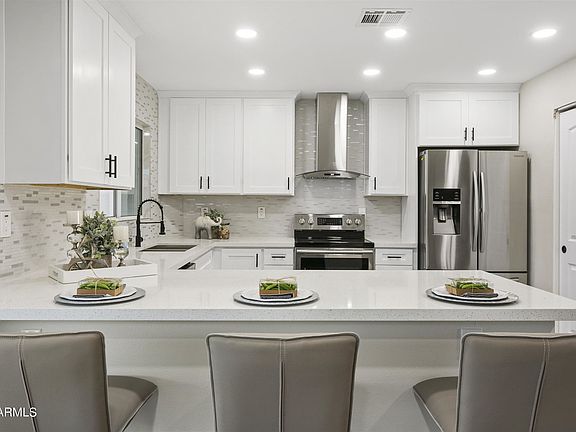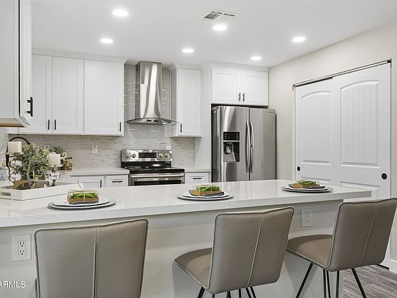 THIS COMMUNITY HAS NO RENTAL RESTRICTIONS, SHORT TERM RENTALS ARE OK!!! Come see this large 4 bedroom townhome with a screened in patio that doubles the living area for endless enjoyment! Fully renovated with new premium flooring, shaker cabinets, quartz countertops, tile backsplash, and modern fixtures as well as new custom tiled showers, mirrors, fans and paint. The community has a basketball court with lights, a shuffle board court, a large pool with a shade sail section, a retro Ramada with a table and lots of green open space. There is a community center and a lovely grassy area with huge mature shade trees and a dog park too. Conveniently located south of Arcadia central to Scottsdale, Phoenix, Tempe, Sky Harbor Airport and the 202.
