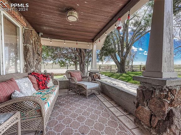 20 MINUTES TO DOWNTOWN COLORADO SPRINGS/MINUTES FROM SCHRIEVER, FORT CARSON AND PETERSON AIR FORCE BASES! This is truly a turn of the century Gem! Original farm house built in 1926 and over 3000 SF was added and finished in 2002 and 2016. New carpet was just installed! Enjoy sweeping views of the mountains and Pikes Peak in this great home on 35 acres in a beautiful location! Interior of the home is spacious and inviting, with five bedrooms, five baths, a formal dining area, office, and loft space. The master suite is complete with a five-piece bath, jetted tub, and attached boudoir room/closet. It is the perfect retreat after a long day. 4 additional bedrooms with 3 upstairs and one on the main level. The kitchen is complete with stainless steel appliances, granite countertops, and large pantry. Sure to please any home chef. The hearth room, with its fireplace and walk-out patio is an ideal spot for entertaining guests or simply enjoying cozy evenings at home. There is also a large covered front porch where you can enjoy the views with your morning cup of coffee or relaxing with family and friends! There is a 2 car detached garage and multiple outbuildings including a chicken coop, Old summer kitchen, grain shed and a couple of storage budlings. Many extras include 2 firepits, shooting range, gorgeous 100+ year old Elm trees, trampoline and partial whole property fencing. This property has everything you need to embrace the mini ranch lifestyle. Its a must see and you will never want to leave. Come see it today!