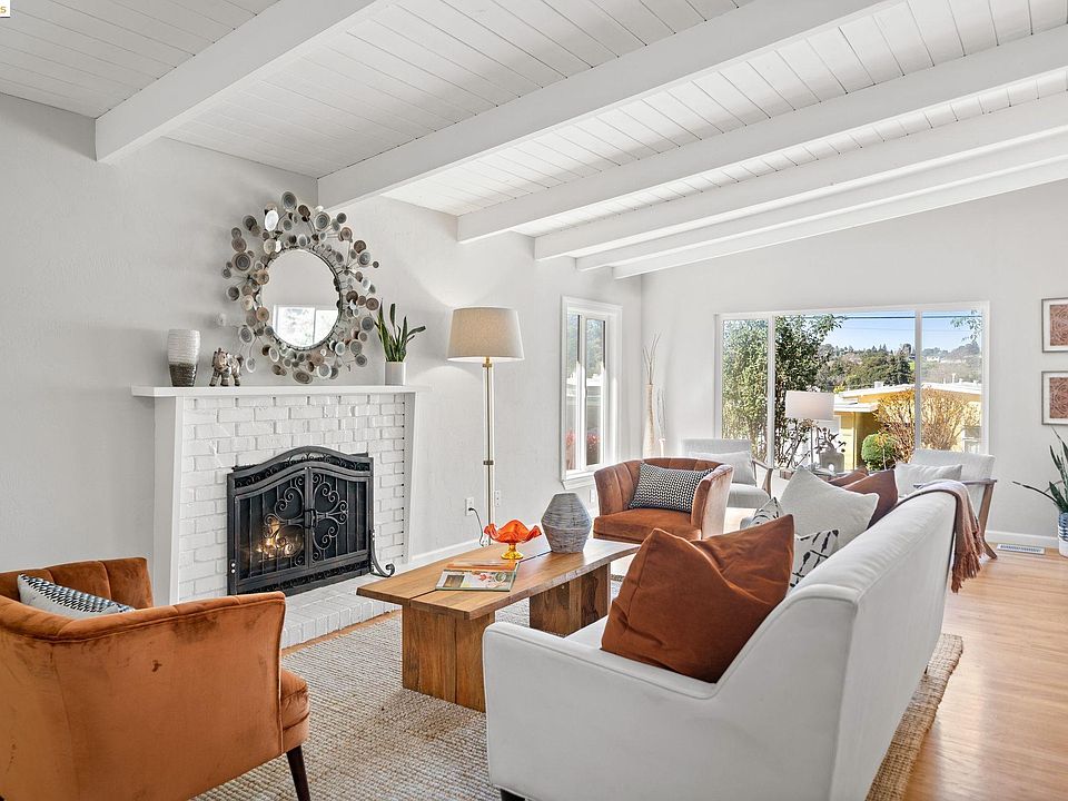 Tastefully updated & well-maintained Mid-century modern home on large level lot. Located in an excellent El Sobrante neighborhood, this updated 3 bdrm, 2 ba home has the exciting modernist features of an Eichler-style Mid-century modern home. Iconic elements include the clean, minimalist design, sloped wood-beamed ceilings & oak hardwood floors. The perfect home for large gatherings as well as comfortingly cozy ones. Features include an open living rm dining rm combo w/handsome brick fireplace, stylish kitchen w/newer cabinets, counters, ceramic tiled floor & newer appliances (included with the sale). This expansive 7,150 square ft lot (per public record) offers multiple patio areas including a rear patio w/gorgeous Italian tiles. Includes a charming principal bedroom w/en suite bathrm that opens to the back garden. Attached 2-car garage w/ample storage space. Convenient access to Clark Road trailhead, Wildcat Canyon Regional Park, Kennedy Grove & Sobrante Ridge; all offering excellent nature trails. One-block to Wildcat Canyon Community School (formerly East Bay Waldorf School)*. Terrific shopping & dining options nearby & convenient to Lakeridge Athletic Club. *Interested parties should verify school district & availability, as attending the closest school is not guaranteed.