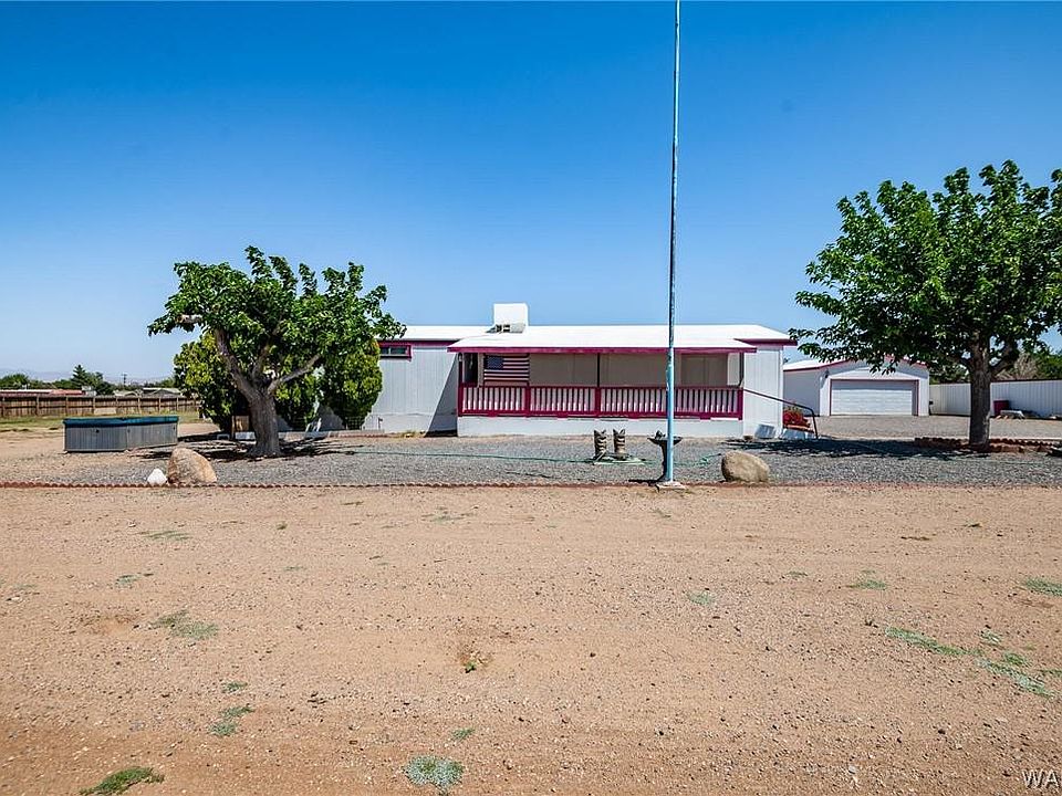 Very clean, 4 bedroom 2 bath home on over an acre of land, fully fenced with covered patios in front and back. Split floor plan with large master suite with a spacious closet and private bath. The outdoor features a covered carport, private 6 ft wooden fence in front of the home with a power entry gate. Plenty of room for RV parking, a 24x27 detached garage, utility shed and covered UTV storage. AMAZING views of the Hualapai Mountains off the back porch. Call today as this home will not last long.