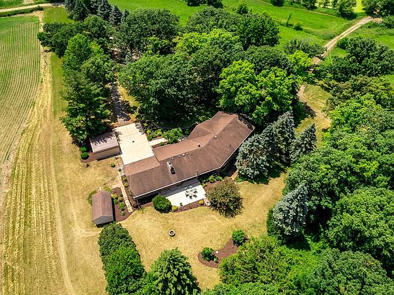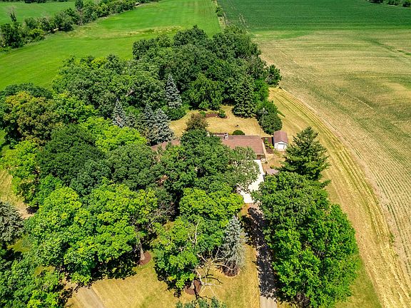 Welcome to this stunning property located in the picturesque town of Freeport, Illinois. This beautiful brick home boasts 5 spacious bedrooms and 3.5 bathrooms, offering plenty of room for comfortable living. As you step inside, you'll be captivated by the inviting family room featuring a gorgeous stone fireplace accompanied by custom built-ins, creating a cozy and elegant atmosphere. The adjacent dining room showcases high-quality wood floors and a trayed ceiling, seamlessly flowing into the living room, where panoramic views of the breathtaking landscape await. The kitchen, equipped with newer appliances, provides ample cabinet storage and an abundance of windows that frame the captivating natural surroundings, allowing you to embrace the beauty of the outdoors as you prepare meals. The large master bedroom offers a private retreat with its own spacious master bathroom, providing a sanctuary for relaxation and rejuvenation. One of the standout features of this property is the fully exposed basement, boasting a large glass slider that leads to the backyard. With a second fireplace, this area serves as an ideal space for entertaining and hosting family gatherings and holidays. Additionally, a sizable laundry room on the lower level provides ample storage and folding space, making household chores a breeze. Laundry hookups are also conveniently available on the main floor. Now, let's talk about the crown jewel of this incredible property—the expansive 73.5 acres of land that offers unparalleled peace and solitude. Imagine sipping your morning coffee in the kitchen while witnessing numerous deer grazing just beyond the window. The property includes a serene pond, a meandering creek, and two spacious outbuildings, providing endless possibilities for hobbies, storage, or potential expansion. Nature enthusiasts will delight in the regular visits from a beloved family of bald eagles, whose majestic nest can be found in a tall tree on the property. Furthermore, this home is conveniently located next to the Jane Adams Trail, a path that is cherished by hikers and biking enthusiasts, offering an opportunity to explore the area's natural beauty. Don't miss out on the chance to own this remarkable property, where comfort, serenity, and natural splendor converge. Schedule a showing today and make this extraordinary Freeport retreat your own. Outbuilding 1: 40x60 with 14 ft walls, (2) 13 ft overhead doors Outbuilding 2: 38x68 with 11'3 ft overhead door with operator, insulated, wrapped, includes power