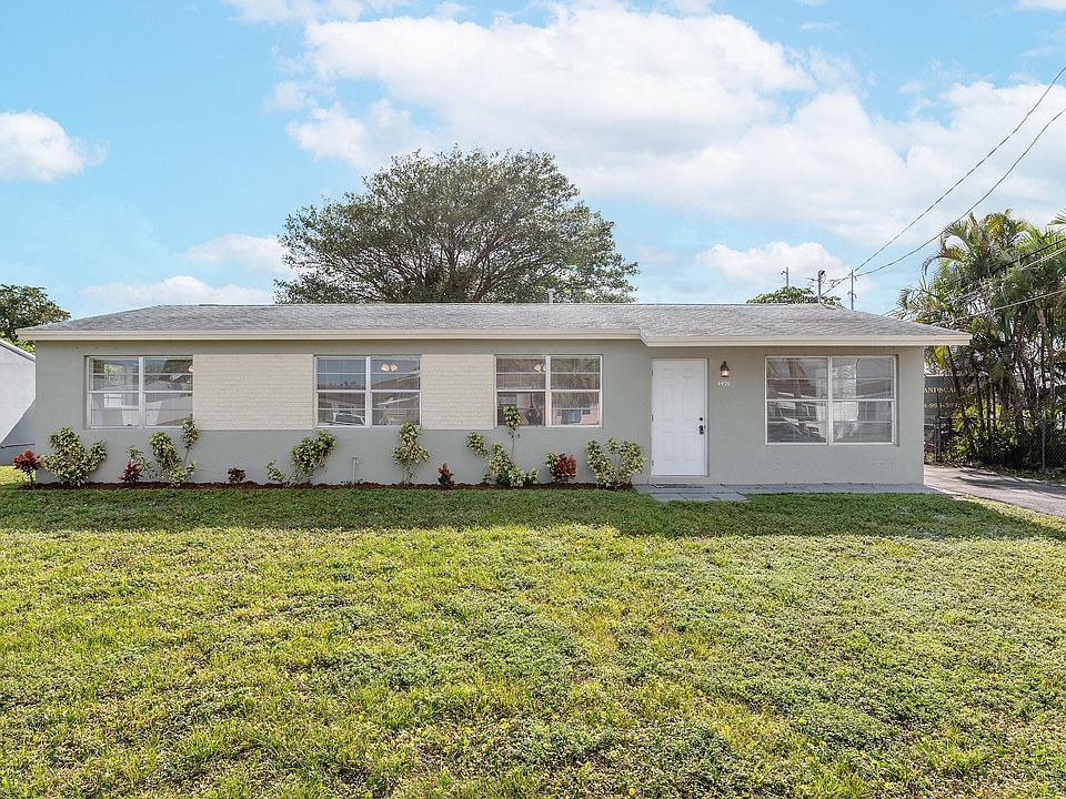 Discover modern living in this 4-bed, 2-bath CBS construction home in Broadview Park, Fort Lauderdale. Updates include new flooring, wood in living areas, carpet in bedrooms, and tiled bathrooms. Enjoy a fully updated kitchen with solid wood cabinets, granite countertops, and stainless steel appliances. Both bathrooms feature new tile work and vanities. Brand new A/C installed. Eligible for a mortgage rate buydown of up to 3% & up to $25,000 in closing cost assistance through Hometown Heroes program. Don't miss this opportunity!