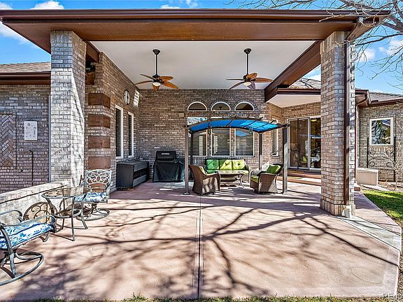 This spectacular 6608 square foot 4-bedroom, 4-bathroom, Custom Ranch Style Home in Littleton is one of a kind! On a quiet, tree-lined street, enjoy the open main level floor plan which boasts high ceilings, grand entrance, spacious living room with gas fireplace, large kitchen featuring Subzero refrigerator, Thermador gas range, and walk-in pantry. A formal dining room, large office, powder room, ensuite master bedroom with jacuzzi tub, and walk in closet (opens to laundry room). Second ensuite bedroom completes the main level. Granite counters throughout, many built-ins, plantation shutters, wood floors and new carpet throughout (April 2023)! A stunning staircase leads to basement with terrific family room/fireplace, 2 bedrooms, bath, media room, 2 large storage rooms with egress windows for additional finishing/bedrooms, golf hitting bay, and separate stairway to garage. This beautiful home has a new roof (2019), 2 new furnace and AC units (2022) and 2 new water heaters (2022,2023). Entertain on the large, covered patio with hot tub, pergola, natural gas grill or relax on front shaded patio. Mature, professionally landscaped yard with smart sprinkler controller. Over-sized heated 3-car garage with hot/cold sink/spigot and workspace area. Community pool and clubhouse across street. This beautiful home is a must see with so much more than listed!