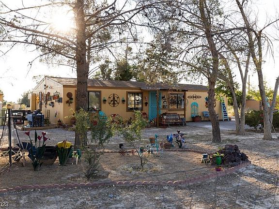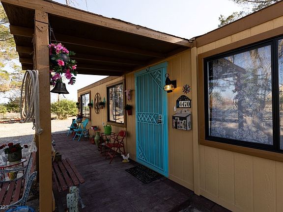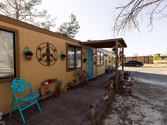 ADORABLE ONE-OF-A-KIND manufactured home converted to real property, offers 3 bedrooms, 2 baths, with wood-burning fireplace, along with TWO PLUS ACRES located on a corner lot with RV access. This home has been completely remodeled, with new appliances and fixtures. Also a 4-ton heat pump unit. This home also offers an extra electrical panel with 200amp. Main house also has 200amp. One-car garage, workshop, and multiple patios for those beautiful desert mornings and sunsets. This home also offers a recently remodeled bungalow One framed storage unit with a concrete pad and 5 separate doors for access.