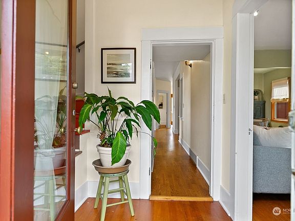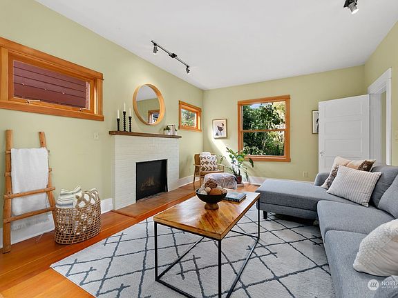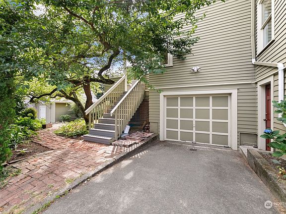 Can't decide between Wallingford & Fremont? This home is centrally-located with the feel of a light-filled oasis. Surrounded by hedges & gardens, it has been significantly remodeled to open-up and update while retaining old-world character. The main floor has two entries. The living room & dining room have original fir floors & antique fixtures that blend beautifully with hand-crafted fir sills, double-pane windows,  radiant floors, and updated electrical. Vaulted ceilings upstairs. Rainier view from the main bedroom. The additional bedroom, lofts & large family room upstairs allow for flexibility. The out-buildings inc. a sauna & sound-insulated & wired studio. Two garages for cars, storage, or a shop, wine cellar...options!