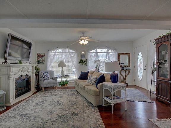 Grand Point manufactured 3 BR, 2 BA home with lake views and mostly furnished! This home has been added on with lots of windows, fresh inside paint, cheerful and cozy, large sunroom and wonderful outdoor living space. Located just 5 minutes from Reasors and just a walk away from boat slips that can be rented not to mention great neighbors.
