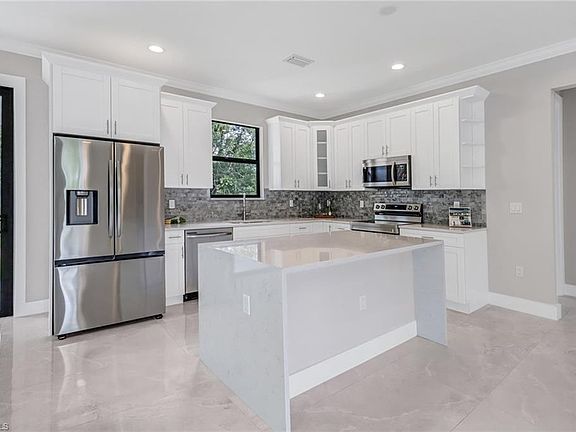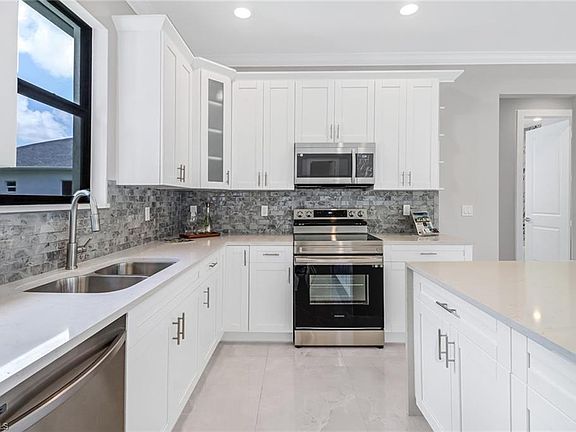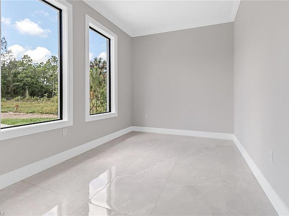 Introducing an exquisite new construction home set upon a sprawling 1.14-acre parcel of land. This remarkable property exudes superior craftsmanship, boasting a meticulously crafted open floor plan and an array of upgrades tailored to elevate your lifestyle. Step into a realm of opulence with a captivating open kitchen design featuring sleek quartz countertops, a chic waterfall island, stainless steel appliances, a conveniently positioned microwave, and sophisticated 42" wood cabinets. The luminous living area is graced with stunning 24” x 48” porcelain tile floors that seamlessly traverse the entirety of the home, accentuated by lofty tray ceilings that exude an air of grandeur. Revel in the finer nuances, from the intricate crown molding in the main living spaces and master suite to the elegant 8" baseboards and 8-ft doors that add a touch of refinement throughout. Enjoy added conveniences like an automated sprinkler system, all impact-resistant windows and doors, and an asphalt driveway. This home in Golden Gate Estates offers the best of both worlds: tranquil rural living within easy reach of Publix, schools, and shopping areas. With no HOA fees to worry about, you'll enjoy the freedom of homeownership. Don't let this extraordinary opportunity slip through your grasp! The home is completely finished and move-in ready. The photographs here are of the actual home, not a similar model.