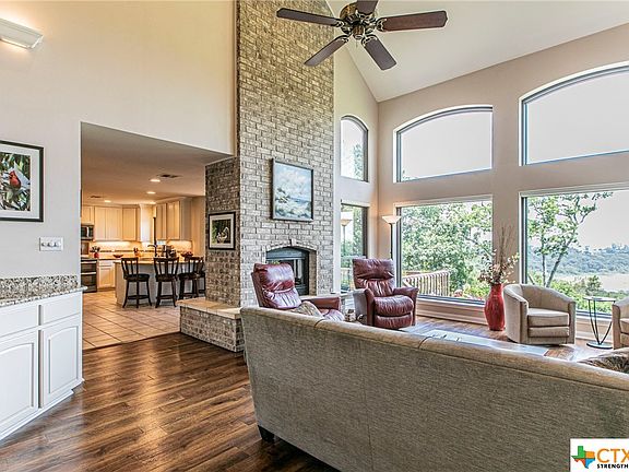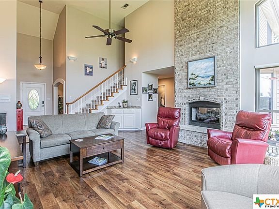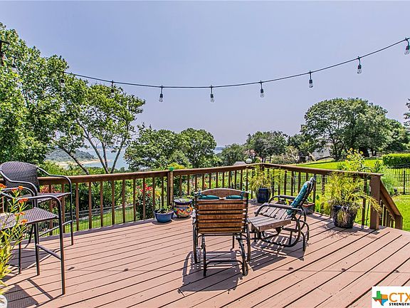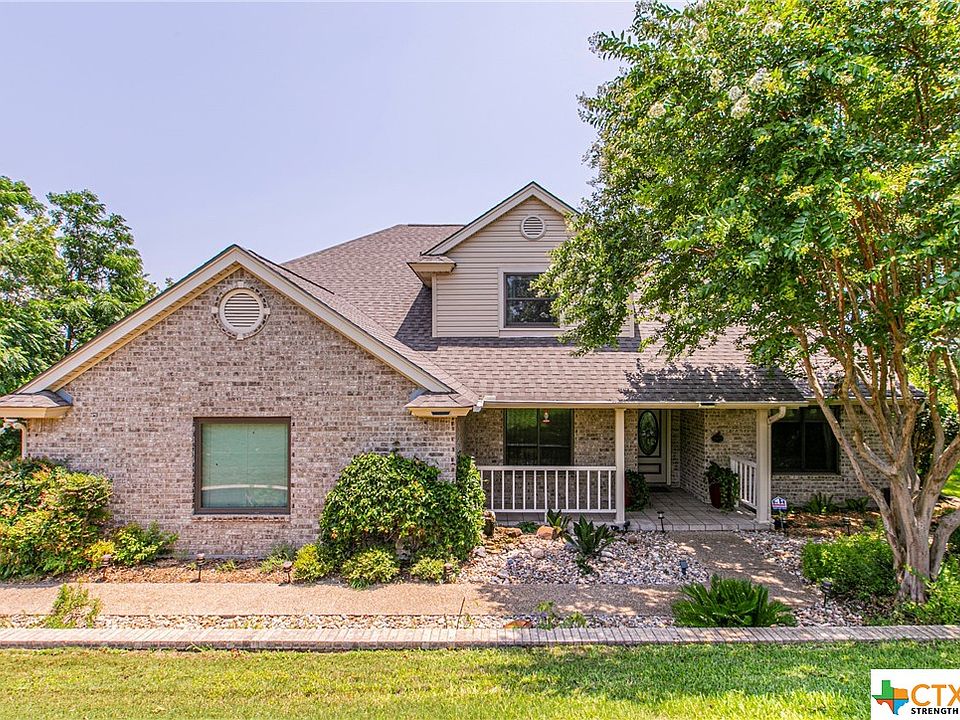 This is quite the charmer! This adorable home with lake view, lush landscaping, pond, gazebo, and firepit will make you feel you're on vacation. Floor to ceiling Anderson windows offer a beautiful view from your 17' tall living area. Living and dining areas have upscale vinyl plank. The kitchen has been recently updated with granite, GE Profile appliances and has a view of the lake as well as the two sided fireplace between the breakfast area and living room. You'll love the pantry with pull outs, cabinet with nice lazy susan and built in hutch/coffee bar. The master has a double vanity with good storage, a walk-in shower, and deck w/hot tub just outside. In addition to two upstairs bedrooms, there is a flex room with a murphy bed and built in desk with fold out table. Other great updates include new roof August 2023, front windows 2021, a/c units 2019 & 2021. Great location near Ft. Cavazos (formerly Ft. Hood), Belton, Belton Lake marina, and parks.