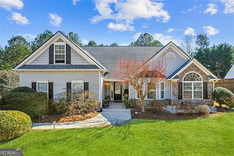 Welcome to this well-maintained home, perfect for the practical needs of a modern household. Enhanced natural lighting with arched windows in the kitchen, cherry wood floors, and a marble fireplace, every corner offers comfort and functionality. The custom cabinets in the garage and home office ensure efficient storage, while the dedicated electrical breaker provides seamless functionality. Outside, a private backyard retreat awaits, surrounded by beautifully landscaped grounds featuring lush zoysia grass, vibrant floral shrubs, and two Japanese maples. Practical upgrades include a recently replaced roof and new water lines under warranty, ensuring peace of mind for years to come. This home is a sanctuary of comfort and convenience. Come see for yourself and experience the lifestyle you've been seeking.