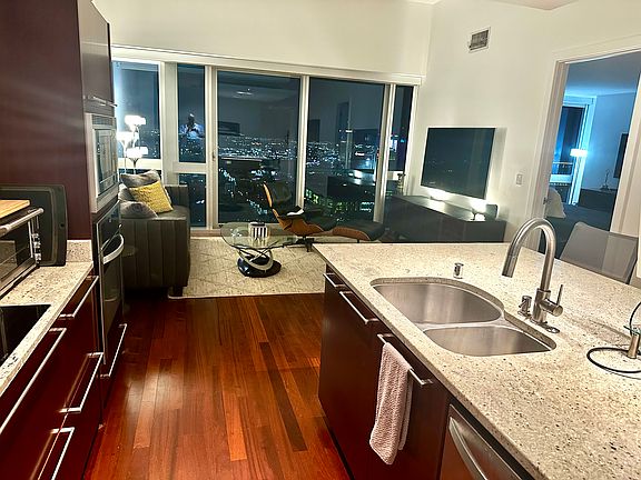 Kitchen: Equipped with stainless steel appliances, including a convection toaster oven and coffeemaker, the kitchen is designed for both functionality and aesthetics.