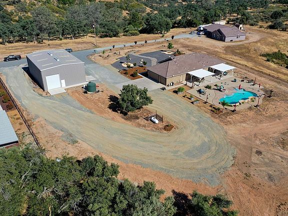 Gorgeous Home with Shop, Private 5 acres and Million Dollar Views located in highly desirable Olive Orchard Estates. From the moment you drive up to this property you, you family & friends will be awed by all it has to offer. Semi-custom Home with 3 Bedrooms, Office, 2 Bath, has been strategically designed with an Open Floor Plan, perfect for entertaining family & friends and with views from every room. The well- designed kitchen, with granite counters, upgraded cabinets, stainless steel appliances opens to the large family room with cozy gas fireplace & lots of windows. Kitchen & dining areas also open to the incredibly designed backyard, landscaped with total relaxation & enjoyment in mind, offering pool with waterfall, in-pool lounge area & mood lighting; firepit, several entertaining areas, automatic sun shades and absolutely stunning views and incredible sunsets. Plenty of room for an outdoor kitchen. The raised-bed vegetable gardens are definitely an added bonus! Spacious master suite, with open bath including dual sinks, soaking tub plus shower & large walk-in closet. Plantation shutters thru-out & 3 car finished garage. Adding to the Wow factor is the 2400sf metal shop(set up for roof solar) with 3- 14' roll up doors, 10k lb car lift, 20' ceiling, 220 power & led lighting. Plenty of room to park your RV, Boat & Toys. Low maintenance landscaping set up with automatic sprinkler system on Bee Hive Network. Welcome to your Little Slice of Heaven! See video tour!!!