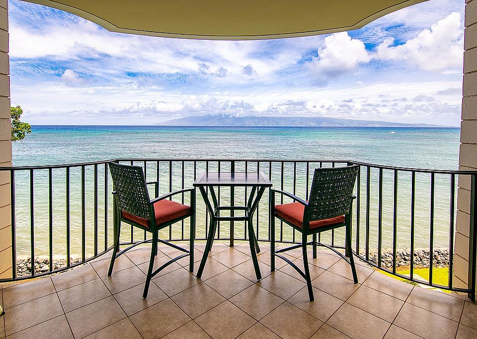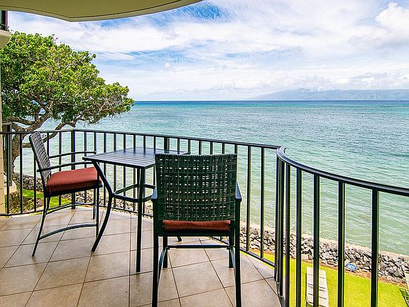 Enjoy unobstructed westward ocean views and stunning sunsets from this beautifully remodeled ocean front home! Literally a stone’s throw from the waves, you will see whales in the winter months and endangered green sea turtles year round from your lanai, with the islands of Moloka'i and Lana'i, as a backdrop. This one bedroom, one-bathroom condo has been completely remodeled with granite counter tops, custom cherry wood cabinets, recessed lighting, stainless-steel appliances and 20" tile throughout. The bathroom has been beautifully remodeled, featuring a large walk-in travertine shower, granite counter top and cherry wood cabinets. Offered fully furnished with authentic rattan furniture and tasteful décor. Kahana Reef is a small, low-rise condominium complex consisting of 88 units in three, four-story buildings, located in a quiet, residential neighborhood approximately 10 minutes north of Lahaina. The property includes a pool, gas grills, on-site laundry room and dedicated parking spaces, and it permits vacation rentals. Built of concrete block in 1974, this complex is quiet, private and closer to the water than any other property you might be looking at. The HOA, which is professionally managed, recently completed a seawall renovation which makes this property a solid investment for years to come.