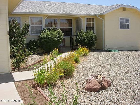 Absolutely charming turn key home in a well keep neighborhood in the heart of Prescott Valley This home offers two large bedrooms. The master suit offers two closets one of them a walkin Master bath has two sinks and large shower Open floor plan with beautiful wood floors great views from dinning room and back porch This home is landscaped with a large shade tree in the back yard beautiful flowers and well keep lawn all on a drip This home is clean and ready to go