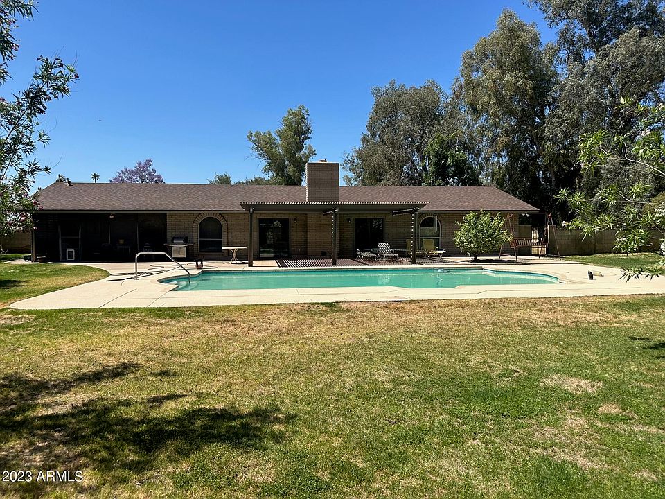 Welcome to this charming single-story ranch-style home nestled in the desirable Ocotillo area of Chandler, Arizona. This home truly has the potential to be transformed into your dream oasis. This Spanish-inspired residence offers a spacious layout, comprising 3 bedrooms, 2 bathrooms, and an expansive living area spanning 2,520 square feet. Situated on an impressive .80-acre lot, this property boasts ample space for outdoor activities and features a refreshing pool.