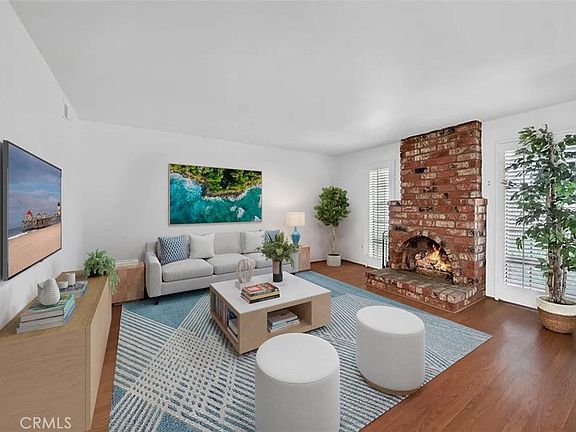 Fabulous Huntington Harbour home is located in a prime location within walking distance to a phenomenal school, great shopping center with dining and just a short bike ride to the beach. Over 1500 square feet of living space with two oversized en-suite bedrooms upstairs both with large closets and lots of natural light. Large living room with plantation shutters looking out to a park with a cozy brick fireplace. Bright kitchen with extra cabinet space, new upgraded countertops and large windows looking into the private back patio. The dining room features a chandelier with sliders leading into the large back patio perfect for summer entertaining. Single-car garage access through the back gated patio with built-in storage and laundry plus an adjacent parking spot. Don't miss out on this amazing opportunity to own this Huntington Harbour home.