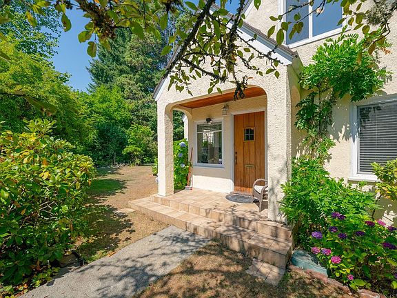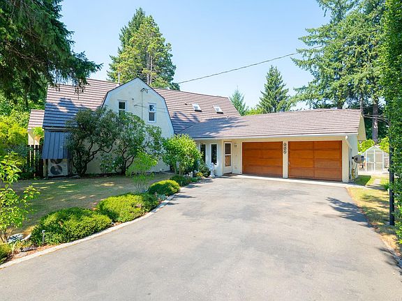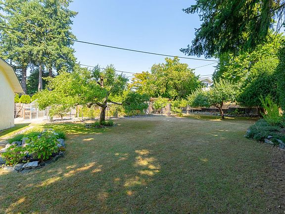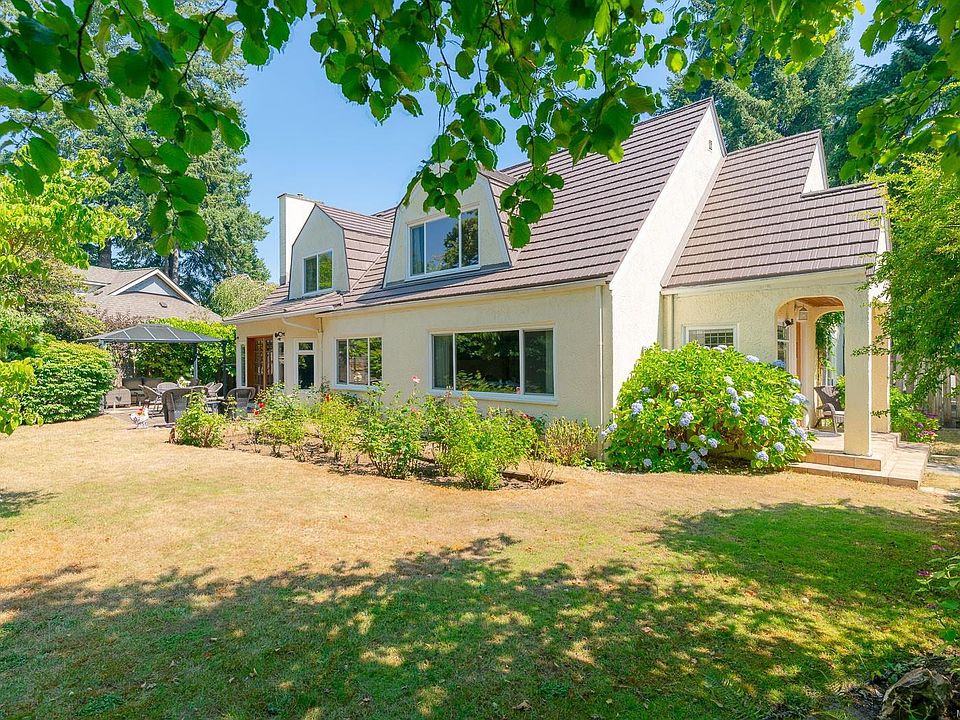 Charming and beautifully updated character home located on a quiet cul-de-sac, just steps from Roger Creek Park and the scenic Scott Kenny Trail. This .46-acre, partially fenced lot is a gardener’s dream, featuring vibrant flowerbeds, productive vegetable gardens, mature fruit trees, a greenhouse, and garden shed. The spacious main floor includes a kitchen with eating area, formal dining room, cozy living and family rooms—each with its own gas fireplace—plus a bedroom, 4-piece bath, and laundry. Upstairs offers two bedrooms, a 2-piece bath, and a generous primary suite complete with ensuite and walk-in closet. The unfinished basement provides ample storage or potential for future development. Notable features include original fir floors, leaded glass windows, French doors, and a brand-new heat pump. This home perfectly blends classic charm with modern comforts in a peaceful, nature-filled setting.