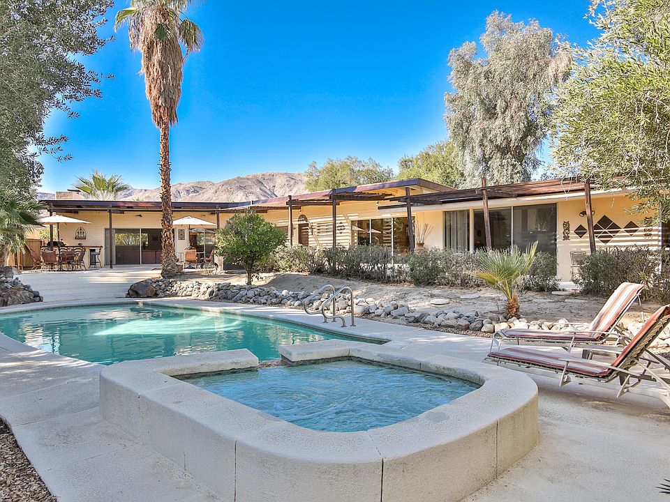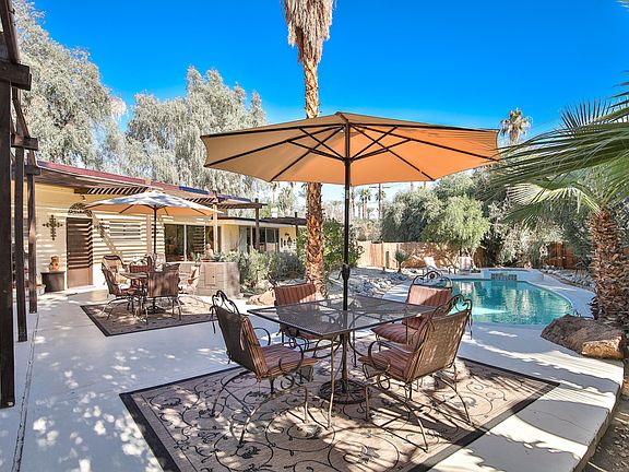 Back On The Market! Outstanding opportunity to own a uniquely situated, mid-century home in Palm Desert. Sitting on a massive 17,800+sqft lot, this property evokes a feeling of resort living as the L-shaped home allows plenty of natural light streaming in thru the east & south facing sliders. Live the life of serenity & tranquility. All rooms hug the expansive backyard tiered patio, where you can relax & luxuriate in a very private setting with mature trees, large, older style swimming pool, spa w cascading water, built-in BBQ area, & your choice of lounge chair, patio chair, or hammock. Front faces west where you enjoy distant mtn views. Open floor plan connects living room and kitchen making it easy to interact with guests and family. Home livable as is - offered furnished per inventory list; or a great opportunity to take your time & make it your own. Uniquely designed with two 1/1 wings, or can be used as a 3 bedroom. Close to Hwy 111, El Paseo, the recently renovated San Pablo Ave., & Palm Desert mall on Monterey. Undeveloped lot in back (seen in photos) is part of this property - perfect for an outdoor living area.