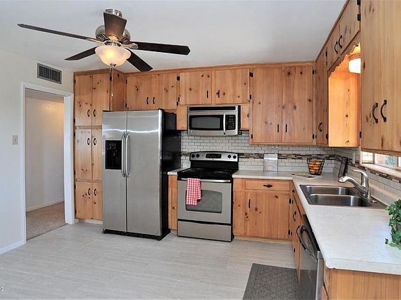 Mid-Century Brick Home With Beautiful Curb Appeal. This 3 bedroom 3 bath home has been carefully restored to keep its 1950's charm. Remodeled kitchen includes beautifully preserved cabinets with new counter tops, tiled flooring and all new stainless steel appliances. Original tile work in the baths have been carefully maintained. Freshly painted with new carpet, and new ceiling fans throughout, this home carries a vintage look with updates that do not compromise it's character! Oversized family room/game room with an adjoining bath and private access can easily be converted into in-law quarters or a second master suite. Enjoy the privacy in your backyard under the covered patio. Corner lot with a covered carport off the alley and an attached storage shed. A must see to appreciate!