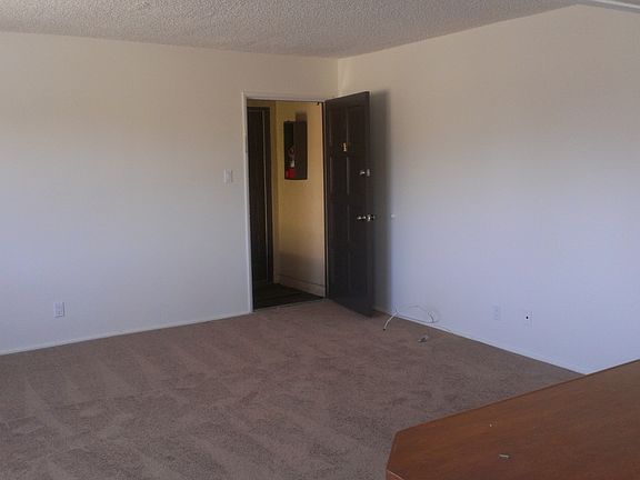 Large, upstairs 2 bedroom 1 bath apartment with new carpeting, new paint, new electric stove, new window coverings, (wall a/c), ceiling fans, common laundry and a 1 car garage. This great corner location allows the sun to shine throughout the apartment. Ready for occupancy today!!Owner pays for water, trash and landscaping. 1 Year Lease required. (Sorry, no pets/no smoking). Available for Immediate Occupancy!!