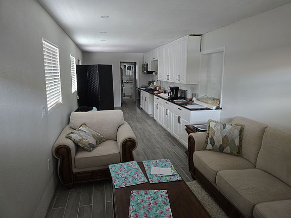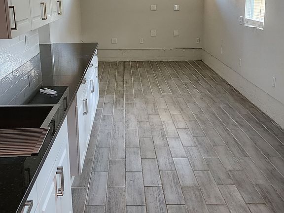 Fresh remodel, great space for tenant. 900 sf on the back of a house, private entrance and large private backyard. Don't judge by the "outside", the inside is wonderful. 18' long granite kitchen counter, white 42" tall upper kitchen cabinets. Vessel sink, glass shower enclosure in bathroom. Bedroom is 12x14 with walk-in closet. Entire space is matching ceramic tile. Very clean, sharp lines. Some photos show landlord furniture, unit is unfurnished. Tenant pays 1/2 utilities.