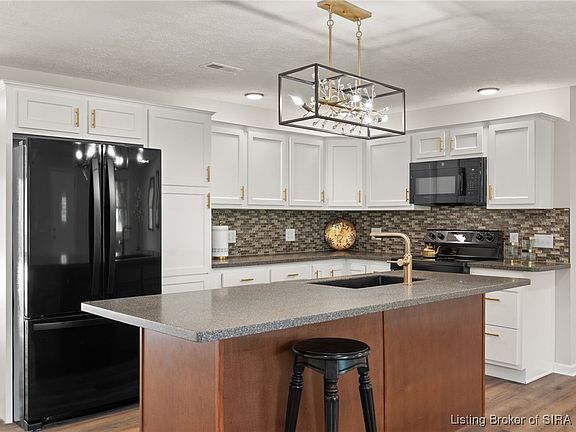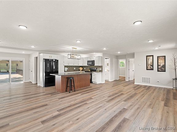 Welcome to 4473 Alonzo Smith Rd., Georgetown, IN, Floyd County! This gorgeous home features elegant white vertical siding, a striking black metal roof, a matching black front door, and black downspouts that create an impressive visual appeal. Step onto your beautiful front patio or enjoy the brand-new wood deck with banisters at the back. Situated on 1.26 acres, this home offers 1,520 sq. ft. of living space all conveniently located on a single level. The custom kitchen is designed to meet all your culinary needs with abundant cabinets for storage, a stylish backsplash that adds a touch of elegance, and a spacious pantry for additional supplies. It's a perfect blend of functionality and aesthetics. The living room area is cozy and inviting, while the large laundry room boasts ample cabinets for storage. The home includes three spacious bedrooms, with the master bedroom featuring a high-end master bath. The second full bathroom is also high-end, ensuring comfort and luxury. Luxury vinyl plank flooring runs throughout the home, complementing the new thermo-pane windows that allow natural sunlight in the living spaces. Additionally, you'll be the envy of the neighborhood with a huge garage and pole barn, totaling 5,000 sq. Ft. Floyd County awaits. Time to call this house a home. SELLERS TO PAY DOWN YOUR INTEREST RATE BY 1/2 a point.