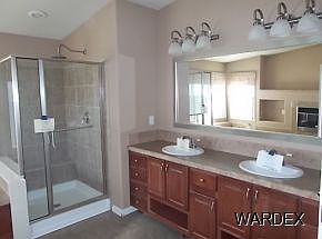BUYERS LOAN FELL THROUGH! THIS BEAUTY IS BACK ON THE MARKET**LARGE BEAUTIFUL HOME IN GOLDEN SAGE RANCHOS SUBDIVISION* 2027 SQ FT OF LIVABLE SQURE FOOTAGE, A HUGE REAR COVERED PORCH THE LENGTH OF THE HOME* SPACIOUS 2 CAR GARAGE WITH GARAGE DOOR OPENER AND REMOTES ** THIS HOME IS JUST LIKE NEW BUT BETTER* ALL THE DO'S HAVE BEEN DONE* WONDERFUL LANDSCAPING IN THE FRONT AND THE REAR OF THE HOME* PLENTY OF RV PARKING ON THIS LOT* LOW PROPERTY TAX $1062 PER YEAR* NO HOA EITHER* THIS PROPERTY HAS REGULAR WATER COMPANY* FRONT YARD AND REAR YARD HAS QUALITY CHAIN-LINK FENCING* MATURE LANDSCAPING* CONCRETE WALK-WAY TO FRONT PORCH* SECURITY SCREEN DOOR* RV PARKING*LARGE 3 BEDROOM 2 BATH HOME*OFFERING A LARGE LIVING ROOM WITH VIEW WINDOWS,CARPET, CEILING FAN & VAULTED CEILINGS* LARGE GREAT ROOM/W FIREPLACE* OPEN KITCHEN W/PLENTY OF QUALITY CABINETS AND COUNTERTOPS,CENTER KITCHEN ISLAND,STAINLESS STEEL APPLIANCES (COOK TOP STOVE W/VENTED FAN, BUILT IN OVEN & MICROWAVE, DISHWASHER,) & A HUGE DEEP WALK IN PANTRY* KING-SIZE OWNERS SUITE W/LARGE WALK IN CLOSET, DUAL VANITY SINKS,WALK IN TILED SHOWER AND SEPARATE SOAK TUB * BOTH GUEST BEDROOMS ARE QUEEN SIZE W/CARPET AND CELING FANS* GUEST BATH ROOM HAS WALK IN SHOWER WITH GLASS SHOWER DOOR,LINEN CABINET*INDOOR LAUNDRY ROOM WITH SHELVING* 2 CAR DETACHED GARAGE W/ AUTOMATIC GARAGE DOOR OPENER AND REMOTE* REAR YARD PATIO IS DEEP AND THE LENGTH OF THE ENTIRE HOME* YOU WILL LOVE TO ENTERTAIN ON THIS REAR PATIO* THE VIEWS ARE GORGEOUS* IF SERENITY IS WHAT YOU SEEK THIS IS THE PROPERTY YOU ARE LOOKING FOR ** REAR YARD IS LANDSCAPED WITH DECORATIVE ROCK, FRUIT TREES(APRICOT, PLUM, ALMOND & FIG) AS WELL AS PRIVACY OLEANDERS LINING THE SIDES OF THE PROPERTY* TOO MUCH TO LIST **
