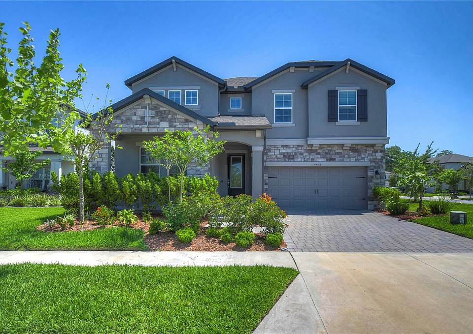 Say hello to this stunning four-bedroom home located in the desirable Starkey Ranch community. From the moment you approach this gorgeous home the stone entry and welcoming front porch set the tone for the rest of this tastefully designed home. It offers a perfect blend of modern design and functionality, with light floors and fresh blue hues throughout. The first level features a versatile room that could be used as a guest room or office, as well as a spacious open concept kitchen, dining room, and grand room. The kitchen is truly the heart of the home, with double ovens, a large quartz counter space, light and bright cabinets, and a gas cooktop. The dining space boasts large windows that flood the room with natural light. The very spacious grand room completes this beautiful functional space perfectly. Upstairs, beautiful wood floors add warmth to the loft space, perfect for a home office or playroom. The master retreat features an en-suite bathroom with a luxurious freestanding soaking tub, double vanities, and plenty of storage. Outside, the large lanai space and fenced backyard are ideal for relaxing and enjoying the sunshine. Additional features of this home include a whole house generator hook up, tankless hot water on demand, and a fenced corner lot. The Starkey Ranch community offers incredible amenities, including K-8 schools, restaurants, shops, playgrounds, community pools, district park, sport fields, walking and bike trails, and plenty of wildlife to enjoy. Don’t miss out on the opportunity to make this beautiful home yours!