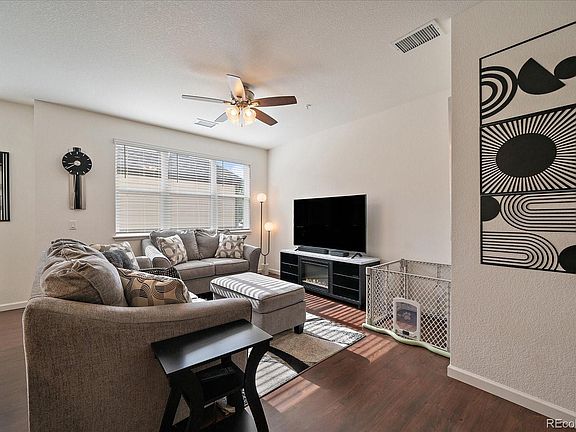 Two bedroom, two bathroom ground level condo in the gated community of Copeland Canyon in Highlands Ranch. This condo has been very well maintained by the original owners who bought it brand new in 2019! On top of the newness, the sellers have made more improvements, like new carpet in the bedrooms and the kitchen backsplash. The living space is open concept with the family room and kitchen, along with a dining area. The kitchen features granite counters, stainless appliances, a gas range and undermount sink in the kitchen island. The primary suite is nice sized with a large walk-in closet and double sinks in the full bathroom. The additional bedroom is next to another full bathroom. The laundry room has a storage shelf and large linen closet and is adjacent to the mechanical closet. All mechanicals were installed in 2019 and are in fantastic condition. The dining area has an exterior door leading to a cozy patio. HOA dues include use of the community pool, fitness center and clubhouse. The Copeland Canyons HOA is very active and has been attentive to updates in many areas including landscaping and road maintenance (newly paved areas and resealed cracks in June 2025). The security gate is open during the day and closed at night. The condo comes with an exclusive-use parking spot and there are many visitor spots close to the unit. Check out the floor plans with the photos as well as the 3D tour!