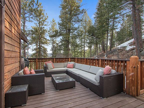 THIS IS IT! This is the dream home you have been waiting for. The best views in Evergreen can be yours! Welcome home to this unique blend of updated rustic contemporary and mountain charm, nestled quietly and conveniently above downtown Evergreen. Beautiful kitchen featuring granite counters, stainless steel appliances, hickory cabinets and breakfast bar. The entire upstairs level master suite has limitless potential with picturesque views of Mt. Evans and Evergreen Lake. No expense has been spared installing reclaimed hardwood floors and the ultra-efficient Vermont Castings wood burning stove in the spectacular Great Room. You will love living outdoors with the expansive decks and balconies, hot tub, tree house, gardens and rock outcroppings, all while enjoying the most captivating views Evergreen has to offer. Listen to the tranquil sounds of nature as you relax in this extraordinary mountain setting. Come see for yourself, this one will not last!