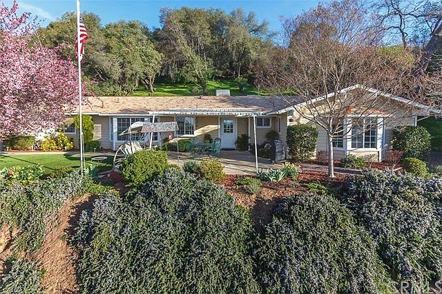 Pleasantly simple in design; yet fluid in function and form this immaculate mountain estate is certainly a cut-above the norm. Strategically positioned to take full advantage of that "Million Dollar" view amplified by an alluring Southern exposure. This 3 bedroom, 2 bath country charmer features an open great room with Lopi wood stove, backed by used brick surrounds and built-in book shelves. Your super clean light filled kitchen has laminate flooring, tile counter tops, pantry closet and plenty of cupboard space. Bay windows in the dining area and master suite each capture their own astonishing views. Your private master bath features dual vanity sinks with on demand hot water plus a walk-in closet. An attached 24'x24' finished garage has a separate electric box for use with a generator which can be very handy indeed. Plan on spending some quality time relaxing on the front patio, since it's shaded by an electric awning and cooled occasionally by a gentle Sierra breeze. Forget about mowing the lawn ever again; because SYNLawn synthetic turf adds the finishing touch to this low maintenance landscaping. If keeping your car clean is a high priority, then having over 300 feet of paved driveway leading to the house, garage, carport, two 8'x8' sheds, pump house and RV parking should be priceless. Located off Triangle Road with quick access to Hwy 140 leading to Yosemite. This picturesque property is transcendent beyond the ordinary, so are you ready to start "livin' the dream"?
