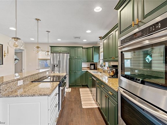 made of! Complete with 3 ovens (yes, 3!) Kraftmaid custom cabinetry with pull-out shelving, granite countertops, island, and ample