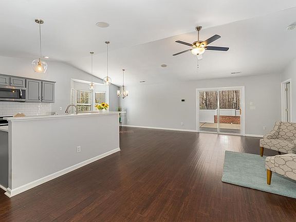 Back on the market due to no fault of seller! This one level beautiful home is cute as a button! This open concept home will not last long! An inviting foyer welcomes you to this beauty. The kitchen is so lovely with a large pantry and has abundant counter space that overlooks the dining and living spaces. Vaulted ceilings in the main living area compliment the corner stone fire place with gas logs that will provide cozy nights and decor! Large master suite with vaulted ceilings and two closets-one walk-in-and double sinks in the master bath w/granite counter tops. Separate sleeping spaces with the primary bdrm in the back of the home and two secondary bdrms in the front, with a convenient hall bath that boasts granite counter tops. The large laundry/mud room is right off the garage, with a small 1/2 step to enter the home. Beautiful vinyl privacy fence in the back yard, with 2 gates and a large concrete patio. Convenient location, in the Triad. Agents see agent only remarks.