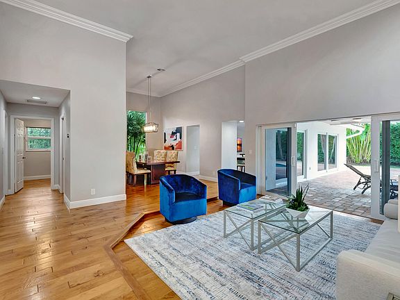 Located in The Colonnade in the heart of Boca Raton, this renovated 4 bedroom, 2.5 bath home, situated on over 1/3 acre lot, is an opportunity you won't want to miss! You'll love the open flow found inside the formal living and dining rooms with over 13 ft ceilings, smooth walls, crown molding, and hardwood floors all protected by impact windows and doors. Designed with entertaining in mind, the gourmet-style kitchen is open to the family room and features quartz counters, stainless appliances & plenty of storage. Enjoy pool views from the primary suite with large walk in closet and relax in the spa like master bath with freestanding tub, marble floors and frameless shower. The brick paved sundeck outback offers the indoor/outdoor living space you've been searching for with a private pool, large grassy area and beautiful lush landscaping.This family-friendly community has a beautiful, park-like setting, complete with picturesque tree-lined streets to make you feel at home.