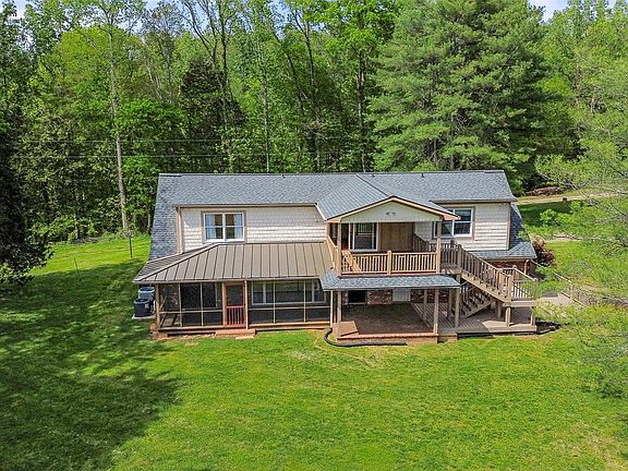 A quiet and serene piece of paradise, this 15.5-acre farm and home are situated far enough from town to feel the benefits of isolation, but close enough that trips to the store aren't an inconvenience. The nearly floor-to-ceiling windows from the living room and the french doors from the dining area open to one of the best screened-in porches in the area. South facing on top of a hill, the sun greets you to your left with morning coffee and settles gently to your right in the evening with a more calming choice of beverage. There are some unfinished projects in this house, a couple of repairs, and plenty of things to update to make the space your own, so let your imagination run wild. With a full unfinished basement, you will have plenty of space for a workshop or storage. The home was recently used as a full-time residence on the main level and as a regularly-booked short-term rental upstairs. Don't miss the opportunity to own this one-of-a-kind home in this one-of-a-kind location!