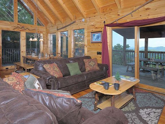 Beautiful 3 bedroom, 3 bath log cabin in the Wears Valley area with a great view! It has a bonus room that is currently used as a 4th bedroom. Sleeps 14 on overnight rental. Features include an open floor plan on the main level, all wood interior, hardwood floors, cathedral ceilings, whirlpool tub, finished basement with a pool table and wet bar, lots of windows, and a hot tub on the deck. Comes fully furnished and decorated! Produces excellent income! Perfect for investment, 2nd home, or even permanent residence! Offered at a great price!