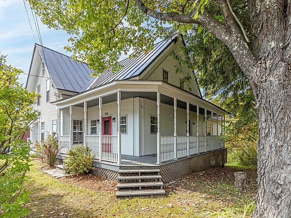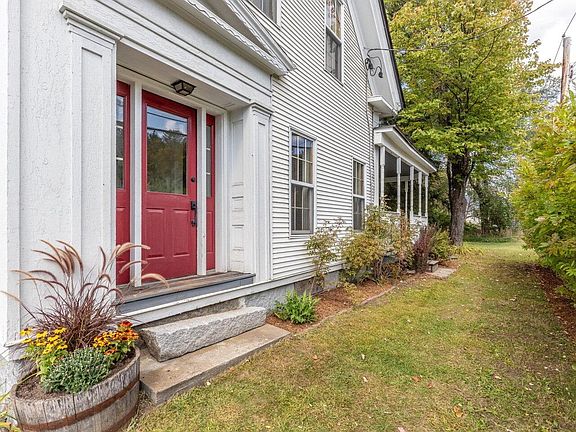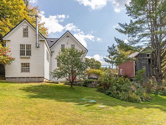 This stunning vintage home in the idyllic village of Calais, VT is a wonderful blend of classic farmhouse charm and contemporary style. Set on 6 private acres, the home's sloping lawns and gardens create a backyard oasis with soothing sounds from the magical waterfalls of Kingsbury Brook that borders the entire northwestern edge of the property. This 4-bedroom, 2 1/2-bath historic home has been beautifully restored and updated and features a wonderful wrap-around porch from which to take in village life. Inside, refinished original wide plank pine floors run from room to room on 2 levels. The stunning kitchen features dark blue cabinetry with open shelving and adjoins the sun-drenched dining room. A 25-foot Great Room with a soaring vaulted ceiling and wood-burning stove overlooks the lovely back lawns. An additional office/bedroom features an en suite half bath and another full bath is just off the hallway. Upstairs are 3 spacious bedrooms featuring more lovely pine floors, loft spaces, and reading nooks under the eaves, plus a wonderful 2nd full bath with clawfoot tub and shower stall. A rustic, finished basement room is insulated with a dedicated heat zone, perfect for a gym or workroom, and the detached barn/garage is great for storage! Bordered by acres of forest, with an endless supply of firewood and trails to the spectacular waterfalls, this home offers uncommon privacy, yet is just minutes to village shops and Montpelier. Once here, you won't want to leave!