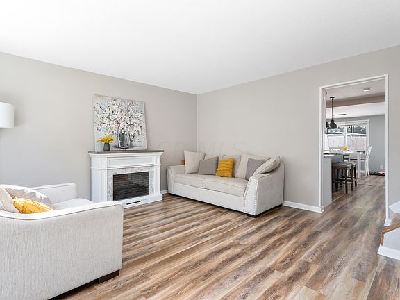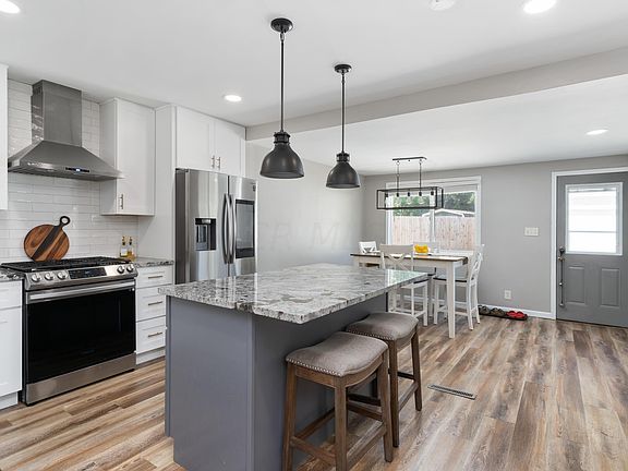 Renovated home with modern updates including Smart Home capabilities! New front door and fresh paint in the Great Room. Totally renovated kitchen boasts new cabinets, granite tops, farmhouse sink, dishwasher, and stainless appliances including a stainless hood. Eating area/Dining has smooth ceilings and new paint. HVAC (3 yrs) and water heater (2 yrs) are newer. Full Hall bath remodeled with fresh paint, new tile, and fixtures. Bedrooms painted. Basement refreshed. Newer 6' wood privacy fence. Newer LVP flooring. Updated light fixtures. Conveniently located 1 mile from Easton. Move-in ready with charm and functionality. 2.5 car detached Garage features a bonus half bath! Smart Home info: Most lights can be dimmed or color changed and connected to phone or Echo.