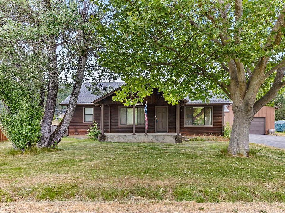 Check out this house in town on 1.25 ac with pasture and fencing for your animals. With 3 bedrooms, 1 bath, generous laundry/mud room, and detached garage/shop, this well-maintained family home is ready for your updates. Need extra space? There's room to expand in the attic with multiple framed rooms ready to be completed. Enjoy the big back yard, gardening area, and covered patio. Walking distance to schools, shopping and skatepark.