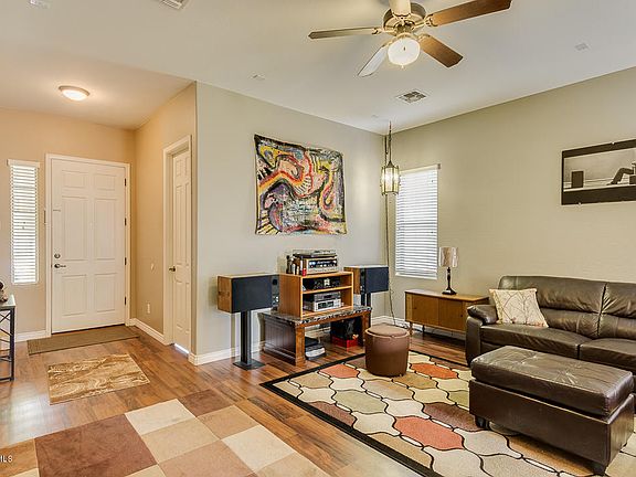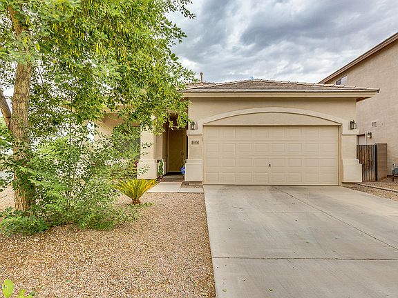 Come see the difference in quality construction! This beautiful property was built by Hacienda, the only 2X6 builder in Maricopa. Luxurious 10-foot ceilings inside and 8-foot doors make the home feel much larger than the square footage shows. Fantastic layout with 4 bedrooms and a large great room with a gas firplace. The kitchen features raised-panel maple cabinets, decorative tile backsplash, black appliance including a gas range, and a breakfast bar. A soft water system also conveys. The backyard has a newly seeded lawn with a sprinkler system that will have lush green grass in no time! Premium location--the property sits on a private corner lot, backs to a 1-story home, and is just across the street from Copper Sky. Take a look today!