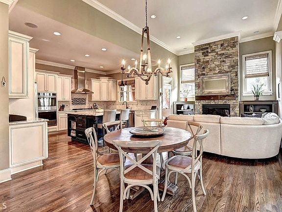 Luxury home, just over 5 yrs old, in private gated community. Master on main, 5BR/5.5B w/finished terrace level. Main features open plan w/8' doorways & hrdwds, great rm w/coffered ceilings, keeping rm w/stacked stone gas FP, 15+ dining rm, large kit w/double ovens, island, maple cabinetry, walk-in pantry w/custom shelves, large butlers pantry w/built in wine fridge. Comfortable screened porch. Spacious master, custom his/hers closets. 3 large en-suites up w/walk-ins. Light filled terrace level w/travertine floors, custom bar, lrg bed & full bath. Pergola, outdoor FP.