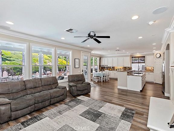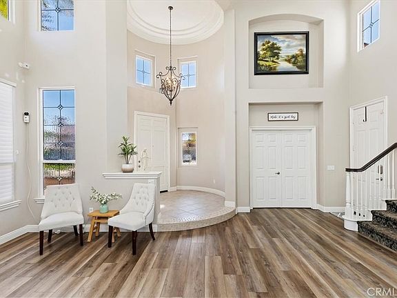 Welcome Home! 4476 Birdie Dr is a stunning 5 Bedroom, 3.5 bath home boasting 3,575 square feet of living space nestled in the green foothills of the Cleveland National forest just below the beautiful Eagle Glen golf course. Upon entry, buyers will love the grand feeling of the cathedral ceilings, chandeliers, and the elegant spiral staircase. Just past the entrance is a beautiful light filled office, perfect for working from home. The main floor has new waterproof 12 mil wood laminate flooring and custom woodworking throughout. The spacious kitchen features granite countertops, stainless steel appliances, a large island and a walk in pantry. Adjacent is the light-filled family room as well as a large first floor mother-in-law suite with an attached, wheelchair accessible shower & toilet and a walk-in closet, the suite is complete with beautiful french doors that open to the stunning backyard. Upstairs you’ll find a smaller office loft, as well as two large bedrooms that share a remodeled bathroom that features new countertops and a custom tiled shower. There is also a massive room that could be used as a playroom, game room, or additional bedroom. The primary suite has a great view of the backyard and also features a beautifully remodeled bathroom with walk-in shower, spacious tub, walk-in closet and a large his and hers vanity with granite countertops. Enjoy the California sunshine in this oasis of a backyard dotted with fragrant fruit trees. There is a swimming pool and spa- newly replastered with pebble tech, rock waterfalls. a large swim step, and a newer pump. The yard features a built-in BBQ and bar complete with extra storage as well as a newer covered patio. There is also a great gas fire pit and large side yard. All of this is set to the backdrop of a perfectly maintained (by the HOA) and manicured hillside complete with mature trees- this makes the lot extremely private with no neighbor to the back. Very low HOA and low taxes. You’ll also love the low maintenance yard with turf and the freshly painted exterior and epoxy in the garage. There are also low energy bills with a great solar package, an upgraded high efficiency HVAC system, and a newer electrical sub panel for charging your electric vehicle. Located near lush parks, hiking trails, golf courses and award winning schools. Just up the hill from freeway access and great shopping and dining options. Schedule a showing today!