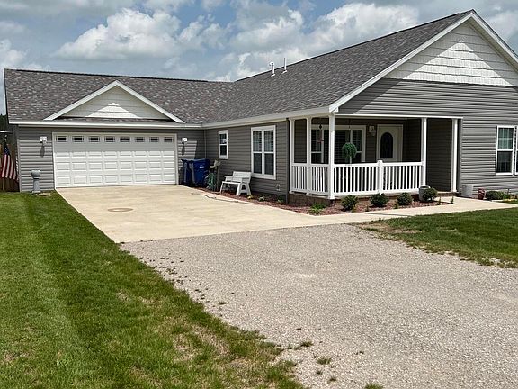 LIKE NEW 3 bedroom, 2 bath home built in 2020 with recent upgrades including a spacious storage shed, central air, and vinyl fencing in back yard. Open floor plan with gourmet kitchen and island with bar seating, 20' 3'' x 14' 4'' living room, main floor master bedroom suite, covered front porch, cement drive and heated garage. Home is situated on a one-acre lot. All appliances included in sale.